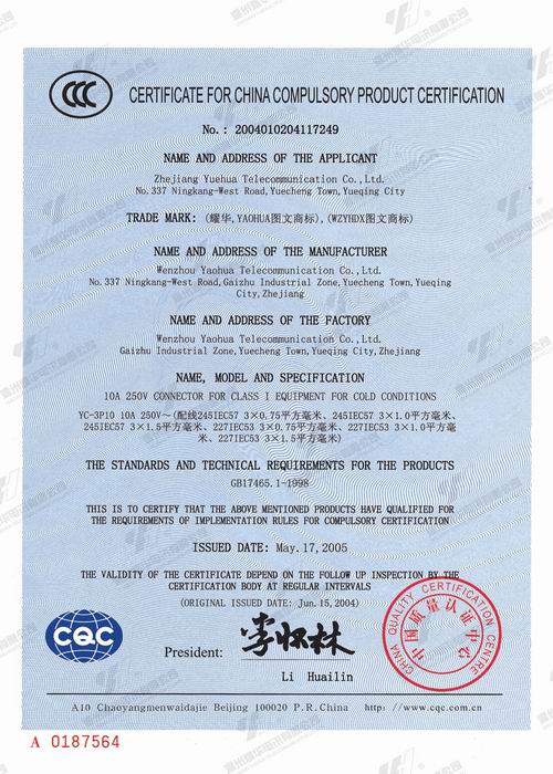 用于冷条件下Ⅰ类设备的10A 250V连接器(英文版)